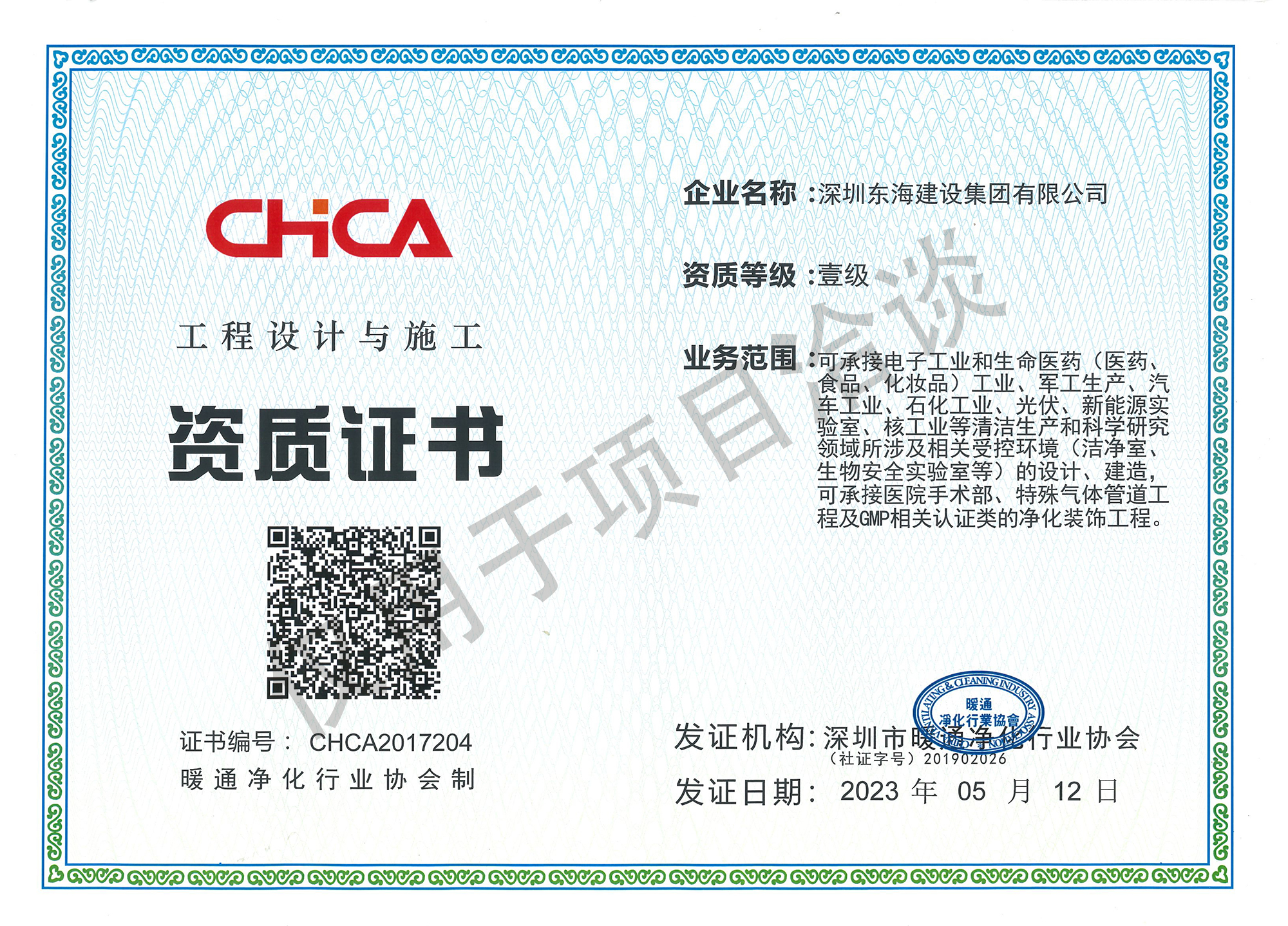 暖通凈化工程設(shè)計(jì)施工資質(zhì)證書(shū)